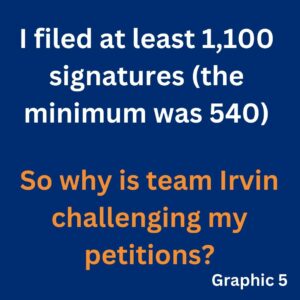 5November 9, 2024← Irvin campaign files three frivolous objections in attempt to remove political opponents from the ballot